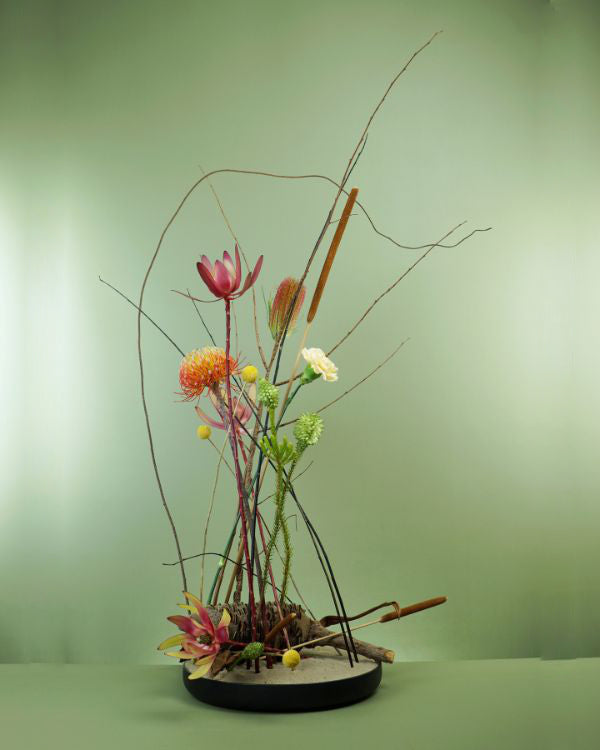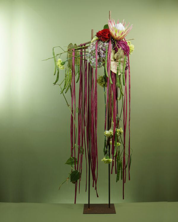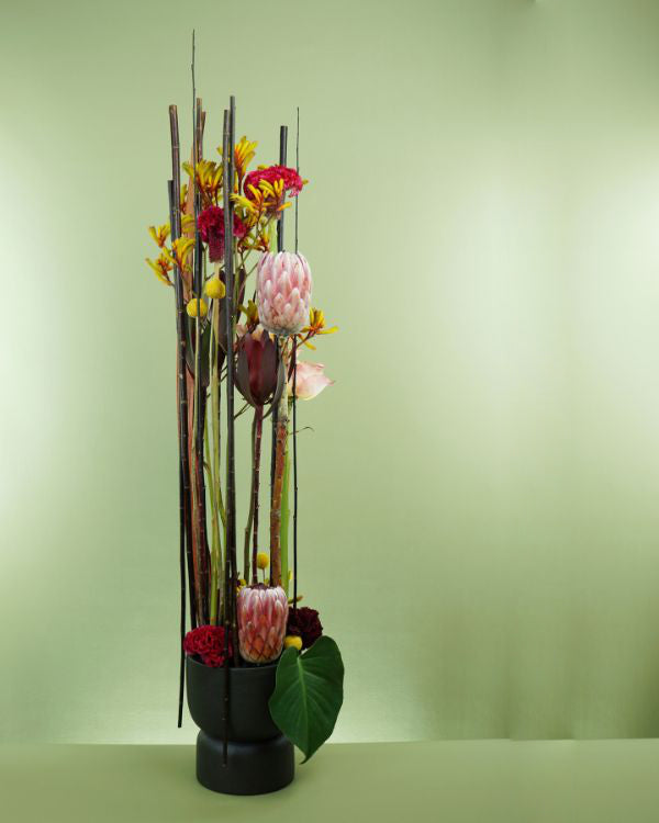 Protea, Celosia, Anigozanthos, Rosa, Salix, Craspedia, Leucadendron, Philodendron