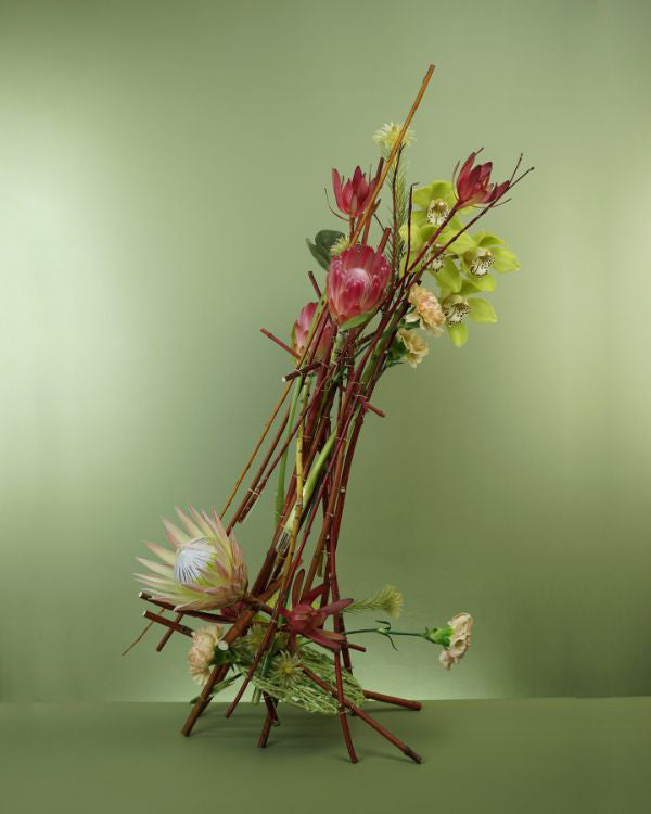 Protea cynaroides, Protea hybrid, Cymbidium, Leucadendron, Phylica, Dianthus caryophyllus, Cornus, Salix