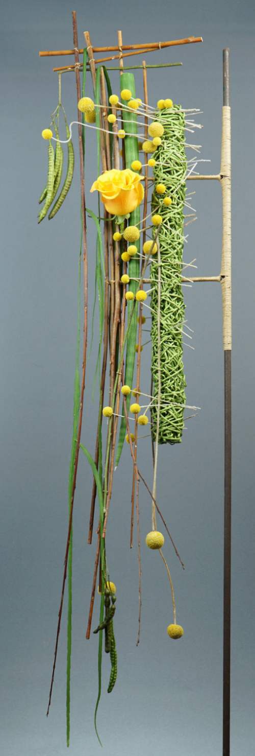 The creation of designs for each task involves the use of sundry components, various mechanics, containers, props and/or accessories. Participants also have free choice of the non-horticultural materials required to create their designs.