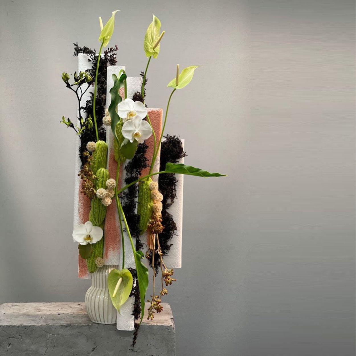 Protea cynaroides, Cymbidium, Cornus, Hakea, Anigozanthos, Jasminum, Anthurium clarinervium, Panicum