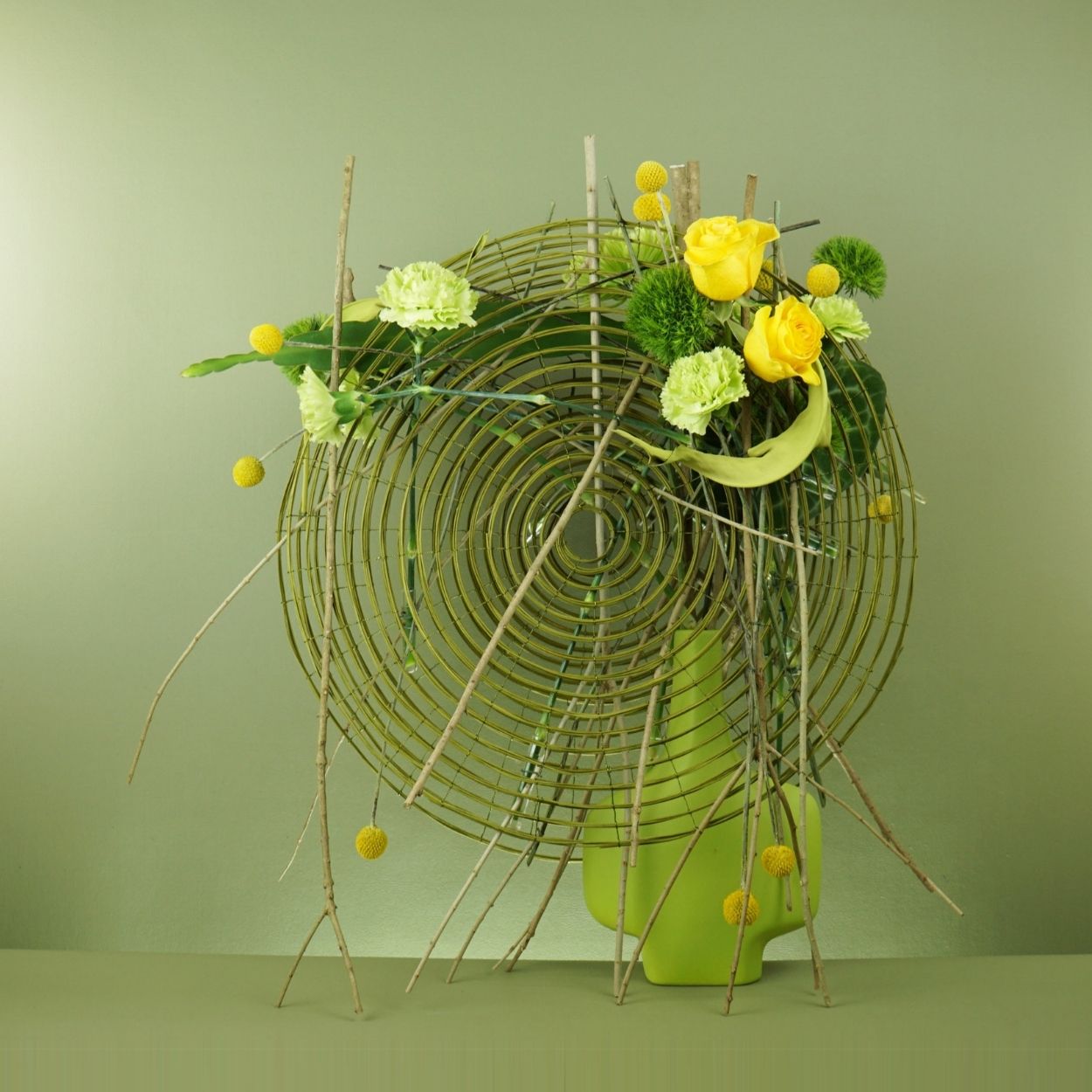 Built around a Lichen encrusted branch, this innovative approach to a hand tied bouquet is not only high in its aesthetic impact; it also employs sustainable materials and methods. It was created by Duc Thuan Bui for the International Master Florist program offered by The Boerma Instituut in The Netherlands.
