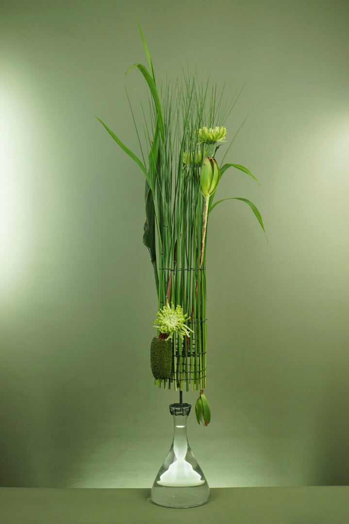 As part of Flower Thinking's Designing to Win program, a group of floral designers, artists and arrangers responded to a competition-style schedule with the theme Glass & Grass.