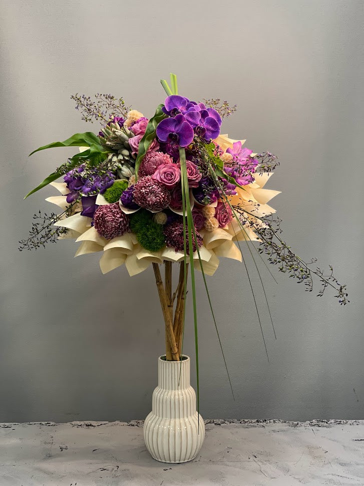 Phalaenopsis, Stock, Scabiosa, Disbud Chrysanthemum, Dianella, Roses, Gladiolus, Dianthus, Kalanchoe