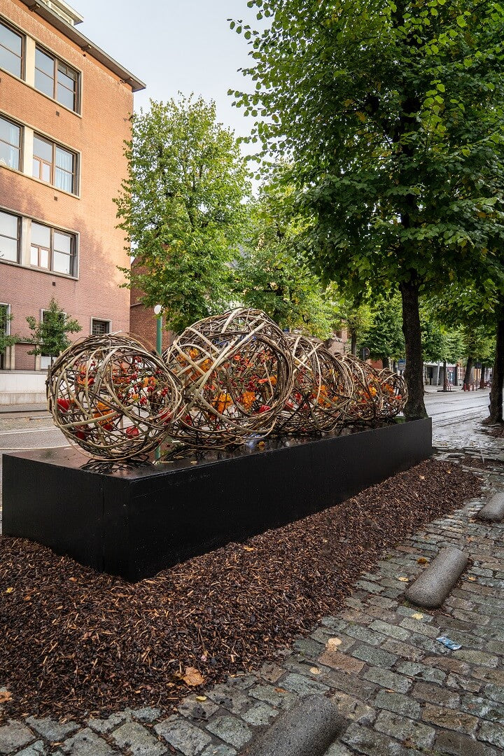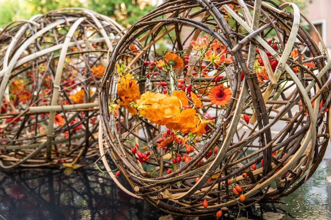 These self made orbs of willow and bamboo were created for Floralien in Ghent, and then reimagined for Hoogstraten 2022.