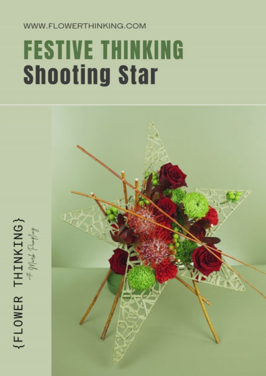 Festive Thinking - Shooting Star is a step by step guide to creating a versatile, freestanding floral design - a bound composition - inspired by the festive symbol of the star. The pages include detailed information about the techniques required, and advice on placing the flowers and materials within a base structure. Technical aspects of the construction are also documented via a comprehensive array of clear images.
