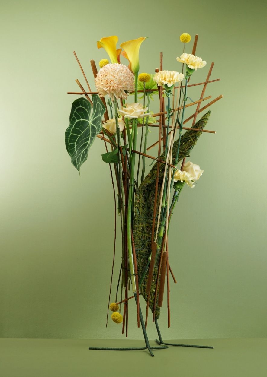 leg instructions for the vertical stand were excellent and easily adapted. The sequence fo adding the wood pieces and flowers were easy to follow. I am now looking forward to using the ideas in this style of arrangement. I am looking forward to the next creation from Mark.